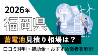 福岡県 【2026年】福岡県の蓄電池の見積もり相場はいくら?口コミ評判・補助金・おすすめ業者を解説! 福岡県で蓄電池を導入したいけど、費用の相場がわからない補助金を使えばいくらになるの? 蓄電池は、100万円以上する大きな買い物だからこそ、見積もりを取る前に相場・補助金・業者選びのポイントをしっかり把握しておくことが重要です。 ... 続きを読む 2026.03.03 福岡県蓄電池