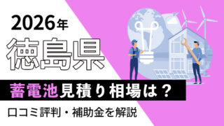 徳島県 【2026年】徳島県の蓄電池の見積もり相場はいくら?口コミ評判・補助金・おすすめ業者を解説! 徳島県で蓄電池を設置すると、見積もりはいくらくらいが相場なの?補助金を使うと、どれくらい費用は下がるの? 徳島県で家庭用蓄電池を導入する場合、7〜10kWhクラスで約120〜180万円前後がひとつの目安です。補助金を活用すれば、... 続きを読む 2026.03.19 徳島県蓄電池