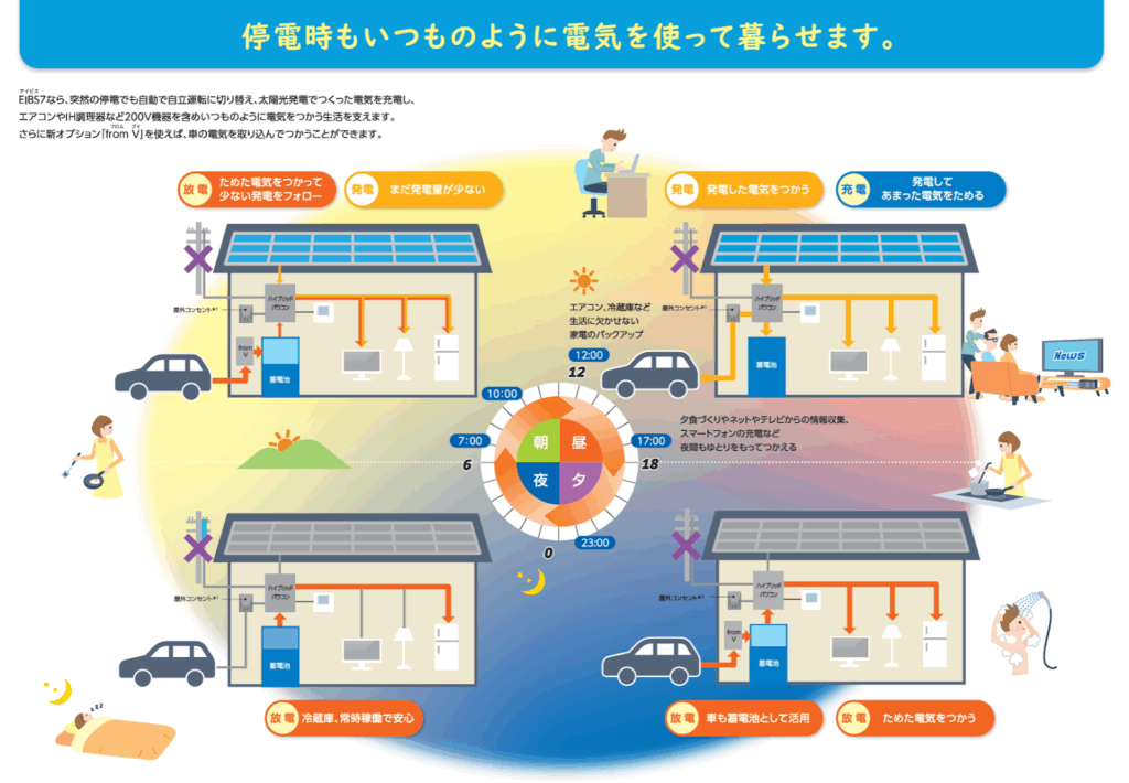 EIBS7は、家庭全体の電力をまかなえる全負荷対応型の蓄電システムです。
