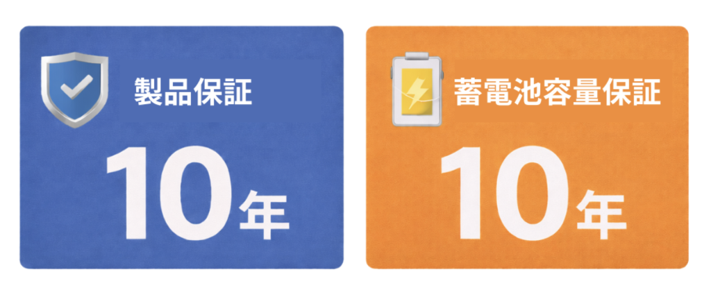 一方、ハイブリッド蓄電システムは、公称容量の60%以上を10年間保証する容量保証があり、さらに有償で5年間の延長保証を付けられる点が強みです。長く使い続けたい場合は、保証を重視した選び方も可能です。
