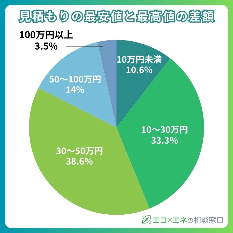 見積もり金額の差についてのアンケートでは、約6割が「30万円以上の価格差」を経験していることがわかりました。