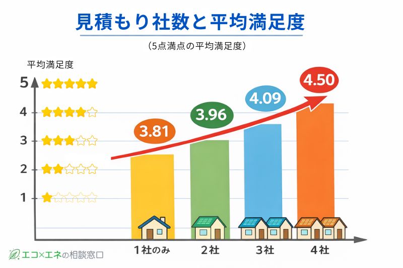 アンケート結果からも、見積もり比較の有無が満足度に影響していることが確認できます。