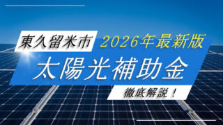 東京都 【2026年最新】東久留米市の太陽光発電・蓄電池補助金を徹底解説! 東久留米市では2026年度現在、太陽光発電システム・蓄電池を対象とした市独自の補助金制度を設けていません。 東久留米市の太陽光発電補助金 太陽光発電設備・蓄電池ともに実施なし 市の補助制度はないものの、東京都と国の制度を両... 続きを読む 2025.06.04 東京都補助金