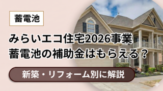 補助金 みらいエコ住宅2026事業で蓄電池の補助金はもらえる?リフォーム・新築別に解説 みらいエコ住宅2026事業で蓄電池に補助金は出る?リフォームと新築で条件が違うって本当?太陽光発電と組み合わせるとお得になる? みらいエコ住宅2026事業の活用を検討している方のなかには、このような疑問を持っている方も多いのでは... 続きを読む 2026.03.25 補助金