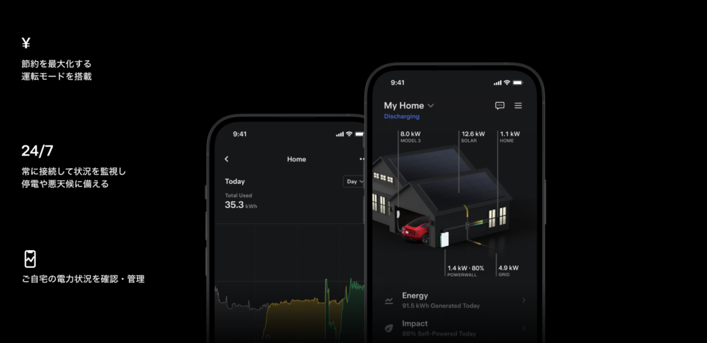 また、パワーウォールはテスラの“エネルギー管理エコシステム”の中核製品で、太陽光やアプリと連携し家庭の電力を最適にコントロールできる点も特徴です。